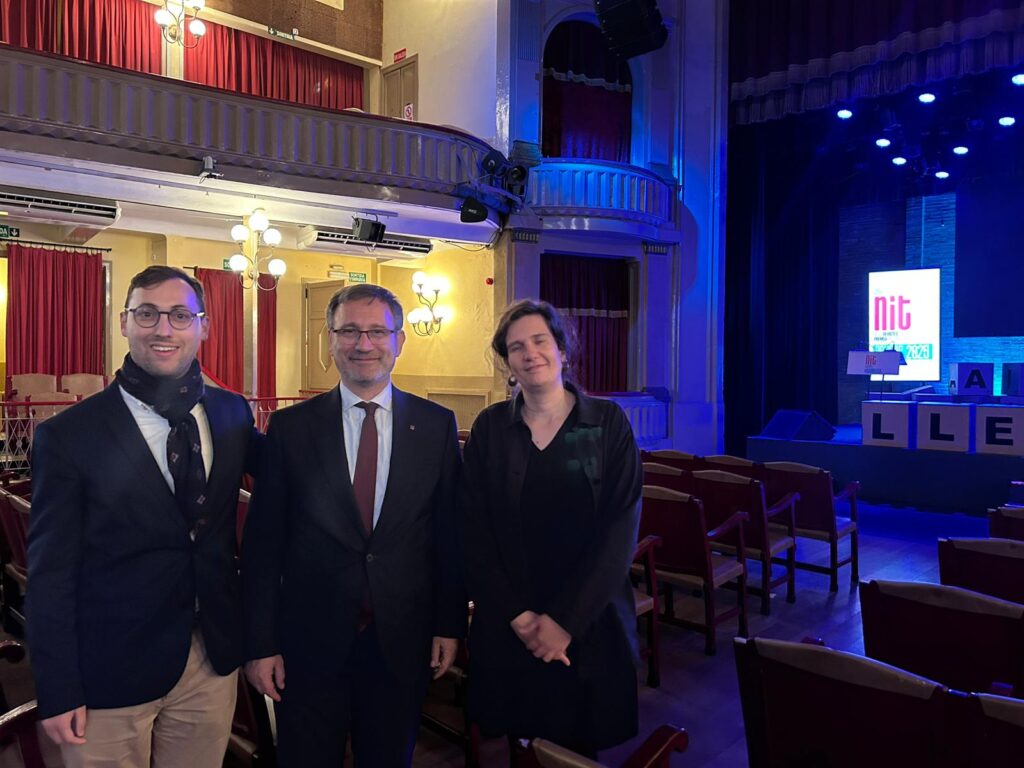 Rémy Farré, secretari de l’APLEC amb Francesc Xavier Vila, Conseller de Política Lingûística i Joana Serra, llibretera de la Llibreria Catalana de Perpinyà.