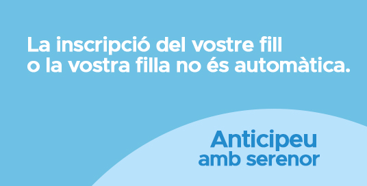 La inscripció del vostre fill o filla en una secció bilingüe no és pas automàtica. Per garantir-li l’accés a l’ensenyament del català, feu-ne la sol·licitud abans que entri al col·legi o al liceu.