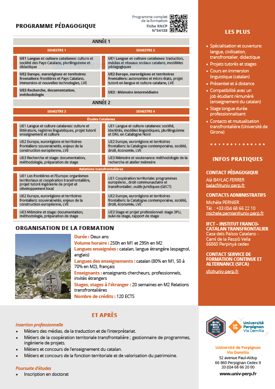 INSCRIPTIONS en MASTER de CATALAN et TRANSFRONTALIER