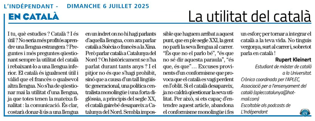 Les cròniques de l’APLEC, que publica l’Indépendant en català