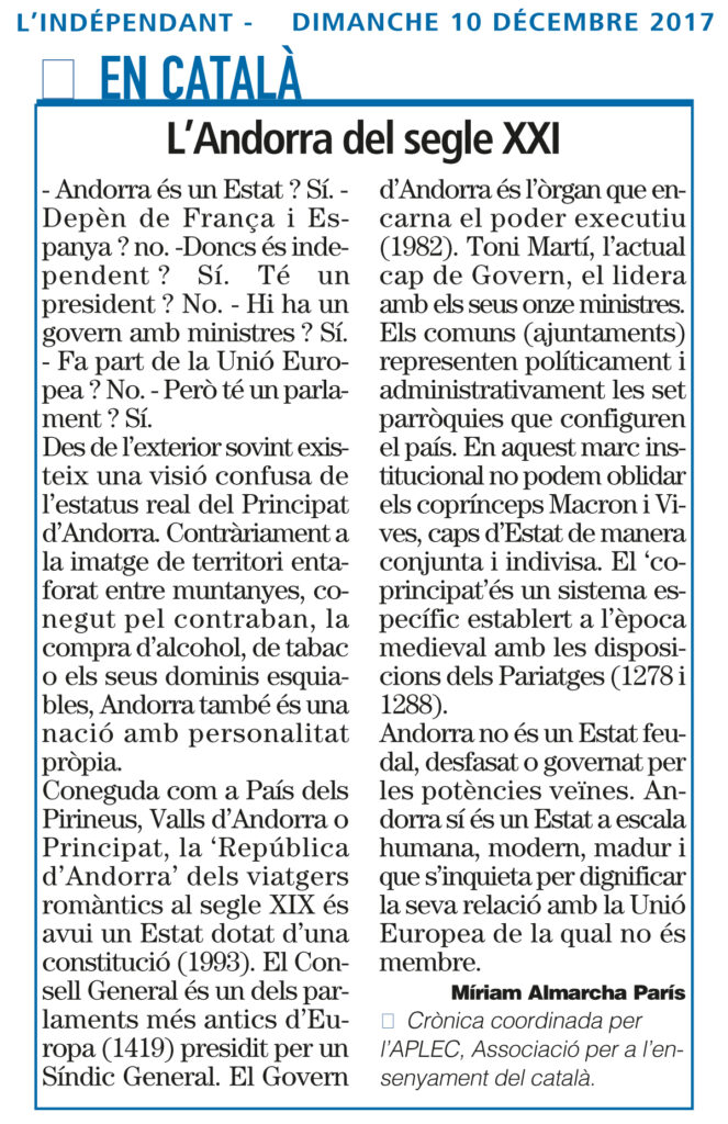 Les cròniques de l’APLEC, que publica l’Indépendant en català