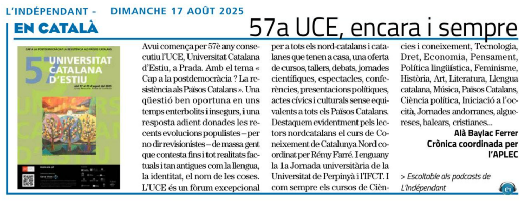Les cròniques de l’APLEC, que publica l’Indépendant en català
