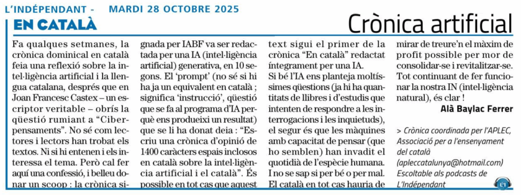 Les cròniques de l’APLEC, que publica l’Indépendant en català