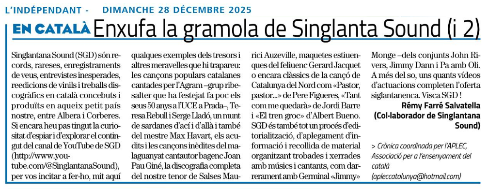 Les cròniques de l’APLEC, que publica l’Indépendant en català
