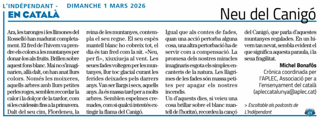 Les cròniques de l’APLEC, que publica l’Indépendant en català